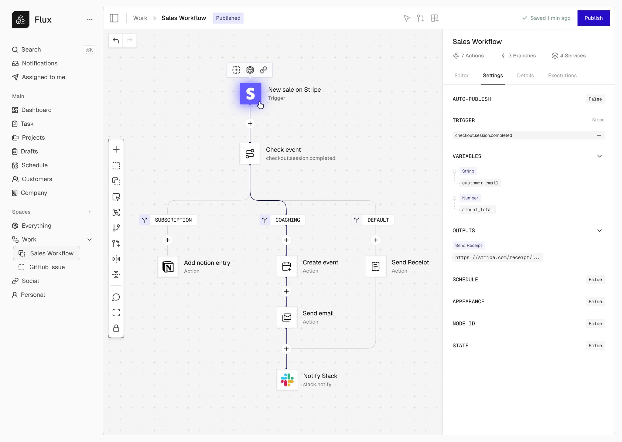 Workflows begin with a trigger. From there, you add the steps you want to run, whether they involve logic, scheduling, data, or AI. Everything is built to feel natural. You focus on the flow, and the interface supports you instead of getting in your way.